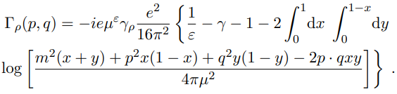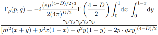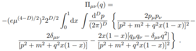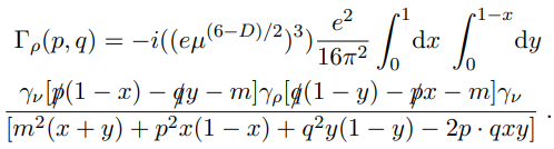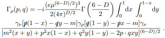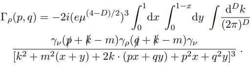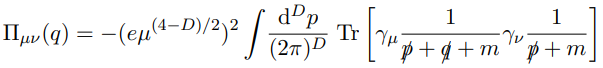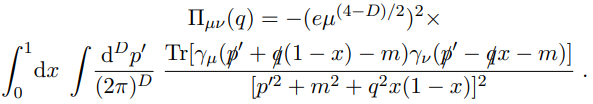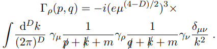 µ being a mass parameter of dimensional regularisation. In Euclidean space photon propagator becomes simply δµν/p2, while the fermion propagator is −i/( + m). The vertex of two fermions and a vector becomes −ieµ(4−D)/2γρ.