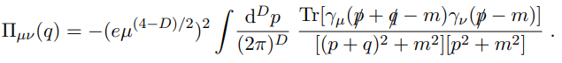 where the minus sign comes because of the fermion loop, the trace is calculated over γ matrices. This will be rewritten in a more suitable form for calculations