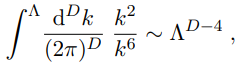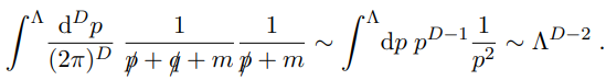 From eq. (9), it is readily apparent that in D = 4 the integral is quadratically divergent, with a sub-leading logarithmic divergent term. In fact, for large p we have