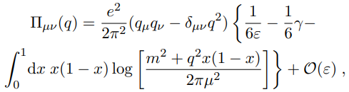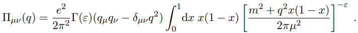 The form of eq. (24) shows that vacuum polarisation Πµν(q2) obtained is also a Lorentz invariant as it should be, since all its parts are Lorentz invariant. It can be shown that this statement holds true to any order of perturbation theory. It also obeys to the equation