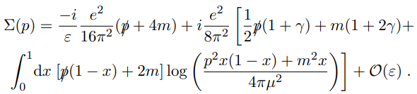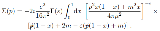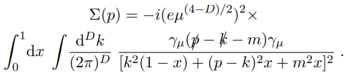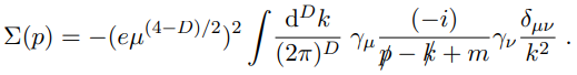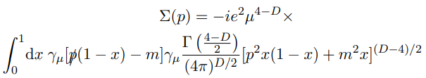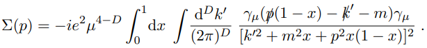 This diagram is usually denoted by Σ(p). As for the vacuum polarisation graph, we will proceed with dimensional regularisation in Euclidean space, for which