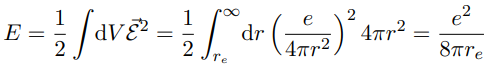 one sees that becomes infinite as the electron radius re goes to 0. In late 19th century, that meant that an electron needed infinite energy to be accelerated.