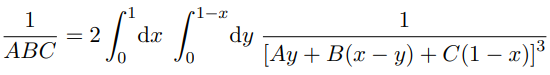 This time, unlike in the previous cases, we have to deal with three propagators inside the loop, so this case is more complicated. It is necessary to introduce two Feynman parameters, x and y, make use of the relation