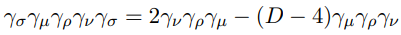 Before expanding in ε = (4 − D)/2, we have to make use of gamma matrices relations