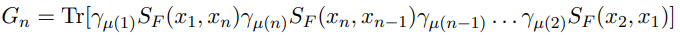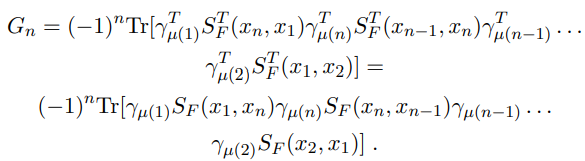 where SF (xi , xj) is the fermion propagator that connects points xi and xj, where photon lines insert. From gamma matrices algebra, we recall the existence of a matrix C = iγ2γ0 such that transposes each gamma matrix: