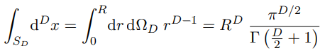 i.e. ΩD = πD/2/Γ(D/2 + 1), one could infer that all possible divergencies stem only from the Gamma function term. Eventually, we will get rid of those infinities obtaining meaningful results.