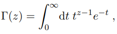 for (z) > 0, which satisfies the recursive relation Γ(z + 1) = zΓ(z), thus having the property that for integer values Γ(n) = (n − 1)! since Γ(1) = 1.