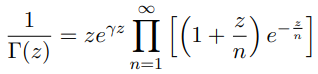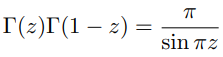 γ being the Euler–Mascheroni’s constant, γ ≈ 0.57721. From (71), it is readily apparent that Γ(z) is analytic except for negative integers z = 0, −1, −2, . . . where it has simple poles. It is also possible to obtain the reflection formula