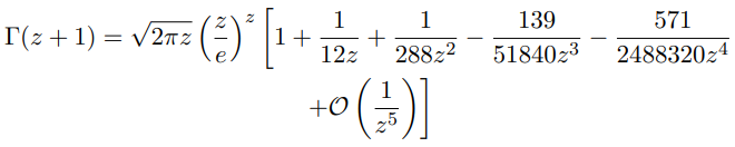Another relevant formula related to the Gamma function is the asymptotic expansion, known as Stirling’s series: