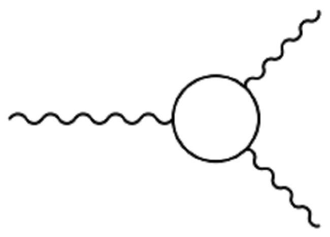 At the one-loop level for QED, we have to consider also diagrams with an internal fermionic loop and an odd number of external photons, as shown in Figs. 4 and 5, and one with four external photons as in Fig. 6.