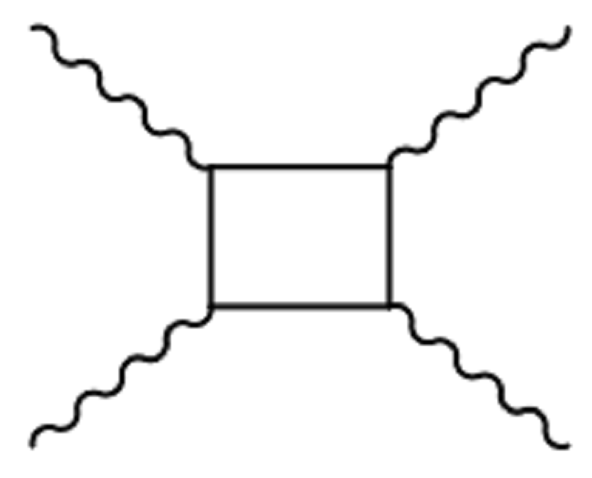 About the box diagram with four external photons depicted in Fig. 6, often referred to as a light–light scattering diagram, the internal loop is made out of four fermions; therefore, for D = 4, it is expected to diverge like