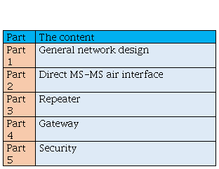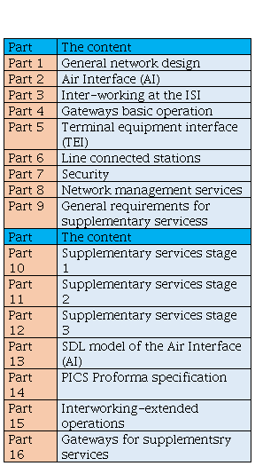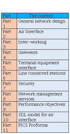 The contents of the system Specifications of the TETRA 1 standard, from ETS 300 392 to ETS 300 396, are shown in the following Tables 1, 2, 3, 4 and 5.