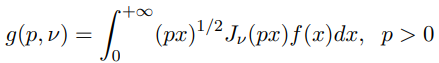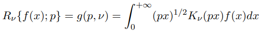 is called the k transform with p as a complex parameter and Kν(px) is called the Modified Bessel function of the third kind or the Macdonald function, see (Mathai et al, 2010, p.53). The Hankel transform of a function f(x), denoted by g(p, ν) is defined as