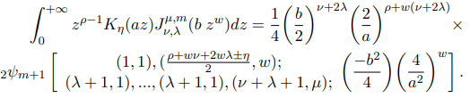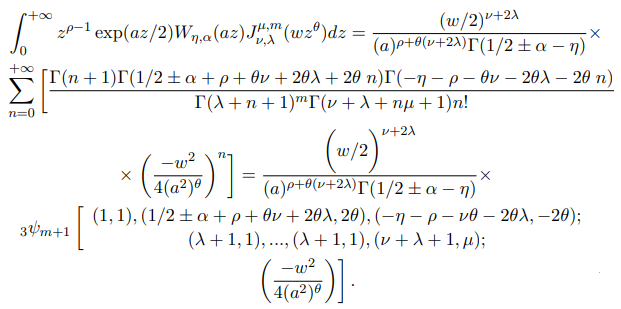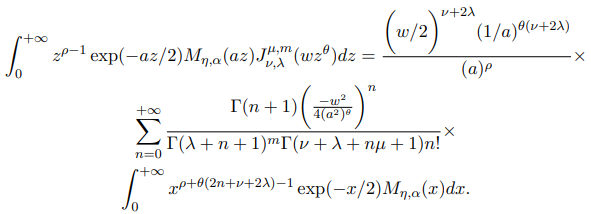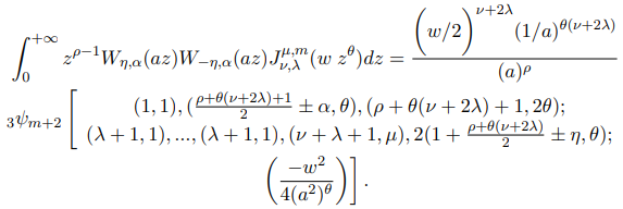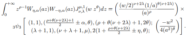 This section deals with the evaluation of integrals formulas involving the Lommel-Wright function defined in (7) and the integrals involving the product of the Bessel function of first kind, Kelvin‘s function and the Whittaker function (Whittaker & Watson, 2013) with the generalized Lommel-Wright function.