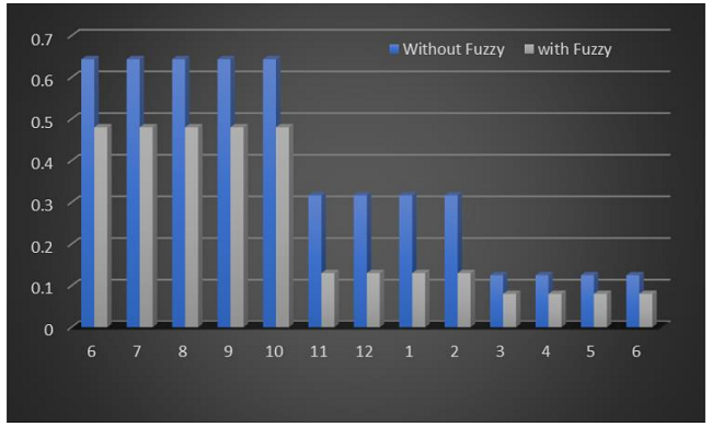 The results of the system are shown in Figures 6, 7 and 8. Figures 6 and 7 show the output of the fuzzy system, while Figure 8 shows the comparison of the energy consumption between the system with and without using fuzzy logic.
