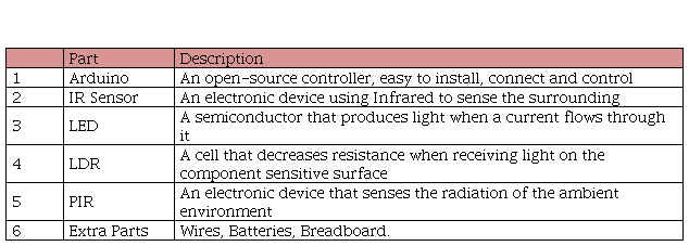 Методе: Представљен је модел уличног осветљења који се састоји од неколико уличних лампи постављених с обе стране улице. Модел представља верну реплику система уличног осветљења у граду Киркуку у Ираку. При израчунавању потрошње електричне енергије узет је у обзир и број објеката који су пролазили улицом у шпицу и ван њега. Контролер за овај модел је Arduino UNO који прима сигнале из три ИЦ сензора, процесира их и шаље до уличних светиљки. Фази логика је примењена у два случаја: у време дневног светла и током изласка и заласка сунца како би се контролисала јачина светлости уличних светиљки.