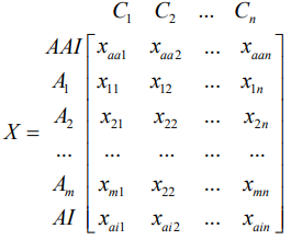 Expansion of the initial decision matrix is done by defining the antiideal (AAI) and ideal (AI) solutions.