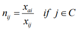 The normalized matrix , i.e. its elements are obtained by applying expressions (18) and (19):
