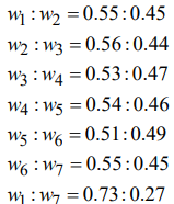 Based on the previous relations, expressions (5) - (7) are used for defining the expressions for the values of the weight coefficients of the criteria:
