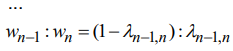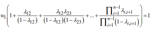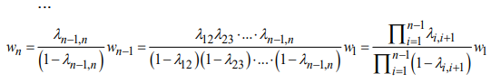 Based on the relationship from step 2, the expressions for determining the weight coefficients of the criteria are derived:
