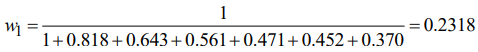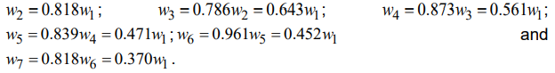 Based on the obtained value w1 , and using the defined expressions (5) - (7), the weight coefficients of other criteria are obtained.