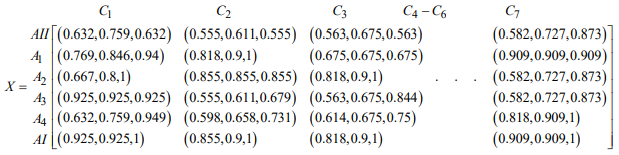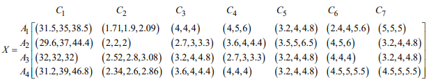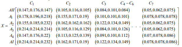 By implementing the degree of confidence and applying expression (14), a fuzzy initial decision matrix is obtained: