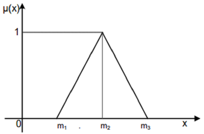 For the fuzzyfication of elements of the initial decision matrix, triangular fuzzy numbers were used (Figure 2). Triangular fuzzy numbers have a form
