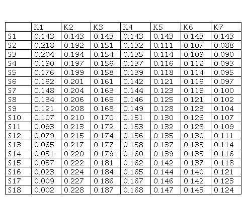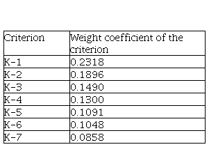 Expressions (5) - (7) are used for calculating the weight coefficients of the remaining criteria