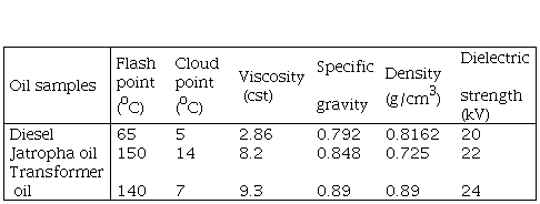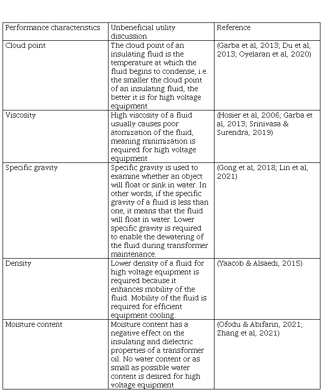 Garba et al (2013) produced Jatropha oil, examined its properties, and compared it with diesel oil and transformer oil to see which one would perform better for transformer application. The performance characteristics of various oils are displayed in Table 5.