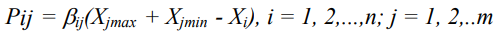 Equation 3 is used to compute the partial negative probability index (Pij), while equation 4 is used to compute its normalized factor () of the jth utility index of the performance characteristic indicator.