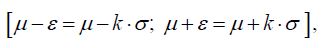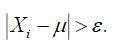 In Figure 1, the values of the random variable Xi and its arithmeticmean μ are applied to the X axis. Based on the probability additiontheorem, for any positive number , it can be written: