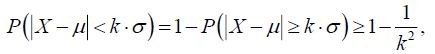 Supposing is an arithmetic mean and σ is a standard deviation of a discrete random variable, Chebyshev formulated the following inequalities (Amidan et al, 2005; Biyya et al, 2017):