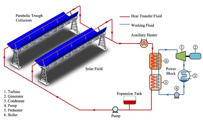 Рис. 2 – Солнечная электростанция с параболическими коллекторами (Vasquez Padilla, 2011)