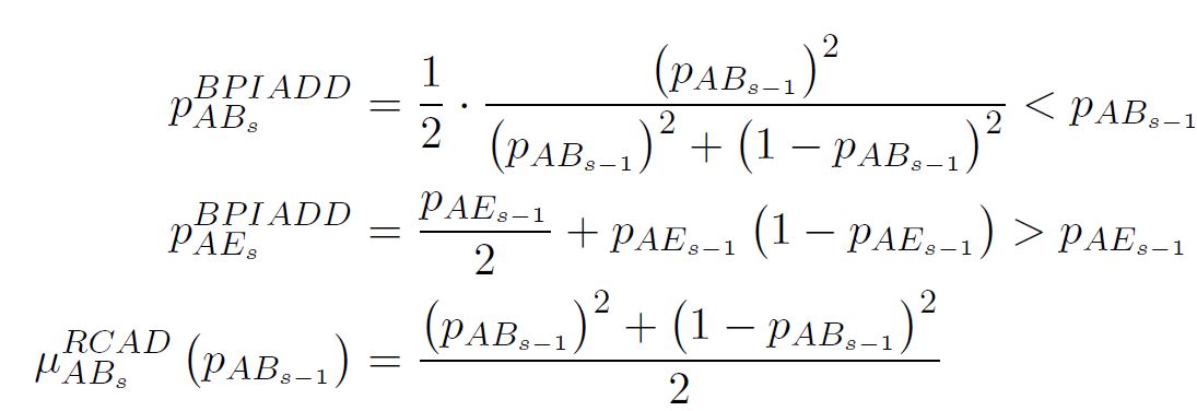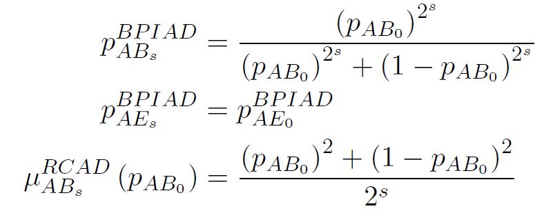 From the first and second expressions in (6) it is clear that the error in the Alice and Bob’s sequence decreases monotonically and the error in the Alice and Eve’s series increases monotonically. By applying the protocol in several iterations using (6) we get that in the . th iteration in order, the following is valid: