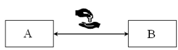 • Direct way of exchanging cryptographic keys when protected communication actors exchange cryptographic keys in direct contact, Figure 1.