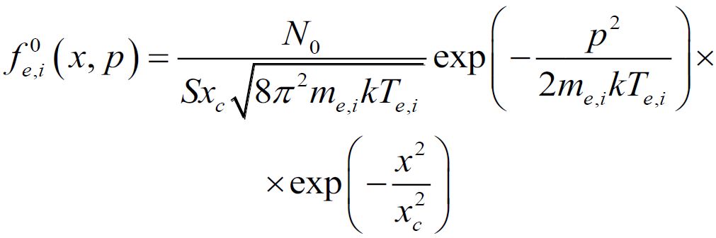 for ions. Assuming that the intial plasma is quasi-neutral, the particle distribution functions can be written in the following form