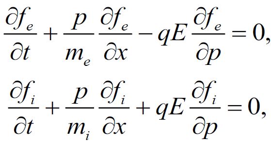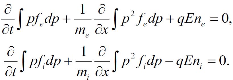 A more complicated approach to the implementation of the "plasma approximation" is based directly on the physical kinetics principles (Dorozhkina & Semenov,1998). From the plasma quasi-neutrality condition , the left and right parts of equations in (3) are multiplied by