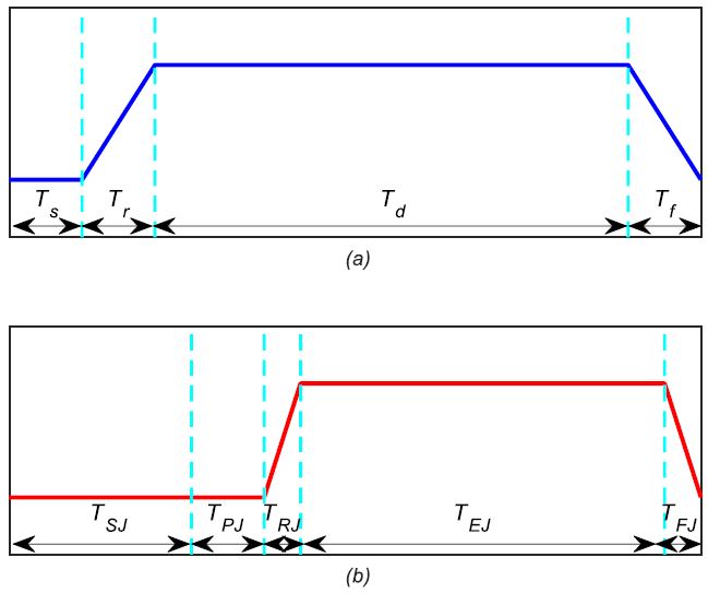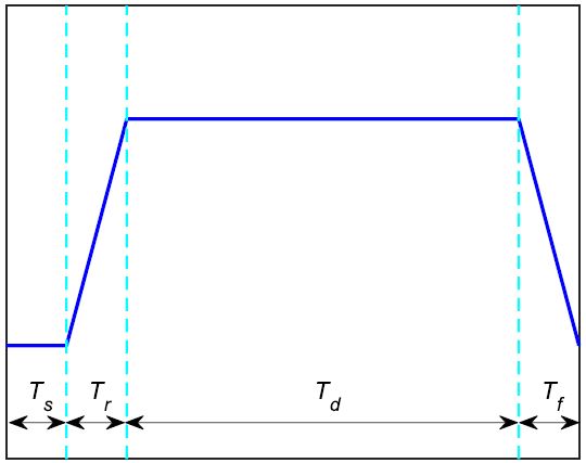 , in order to reach the appropriate level before emission, and the fall time,