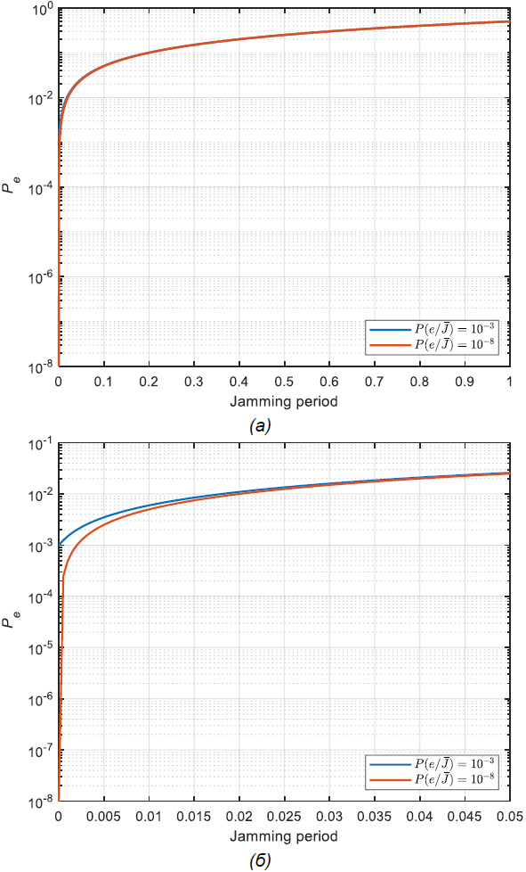 – the error probability when there is jamming of the useful signal.