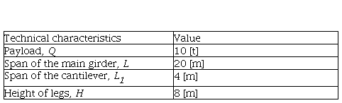On the theoretical basis given in the previous sections, a numerical example was given for the derived solution for a gantry crane (Mašinska industrija Niš – Fabrika dizalica, 1981).