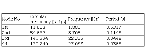 , according to Eq. (7), the first four own circular frequencies of the model of the gantry crane carrying structure are determined (Table 3).