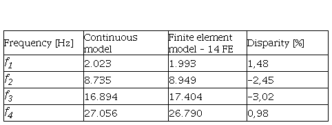In older research works, the determination of natural frequencies of complex carrying structures was based on the use of approximate expressions and methods (Filippov, 1970). Analytic determination of natural frequencies was limited to simple carrying structures (e.g. simple beam and cantilever). In a complex elastic system, solving the frequency equation was difficult because it contains trigonometric and hyperbolic functions. Today, mathematical software packages (e.g. Mathematica, MATLAB, and the others) enable easy solving of the frequency equation of the oscillation of complex elastic systems. recise determination of natural frequencies is fundamental from the aspect of optimizing carrying structures. The method with distributed masses has been treated in numerous literature books, e.g. (Karanovsky & Lebed, 2001; Krodkiewski, 2008).