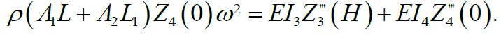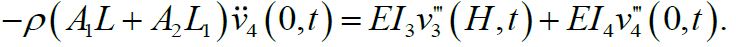 Finally, the dynamic boundary condition on the basis of the Law on motion of the centre of mass of the main girder (element 1) and the action of the transverse forces at the places of its connection with the rigid leg and the hinge leg (elements 3 and 4) reads: