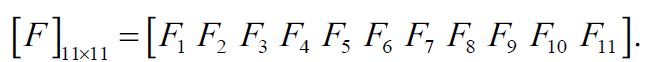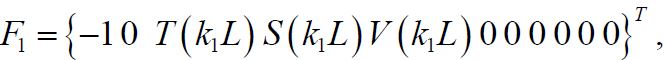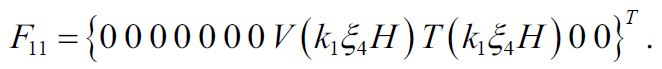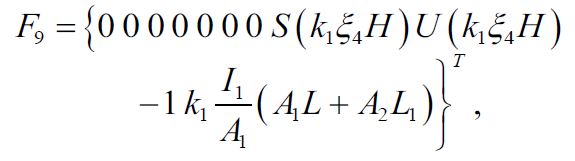 The notice in Eq. (11) is defined by Eq. (12) and Eqs. (13.1) to (13.11). The frequency equation is very complex because the combinations of trigonometric and hyperbolic functions depend on a number of parameters, so that its solution in the algebraic form cannot be found.