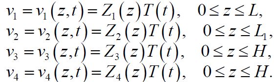 From the defined boundary conditions (Eqs. (9.1-9.16)), a homogeneous system of linear equations is formed, from which the frequency equation follows: