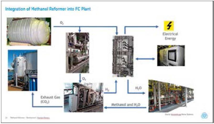 Дијаграм система TKMS/SENER MRFC који интегрише конвертер метанола у систем горивних ћелија у метал-хидридне цилиндре. Употреба овог система, као извора водоника који снабдева горивну ћелију, значи да подморница не мора ускладиштити водоник.