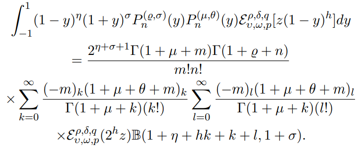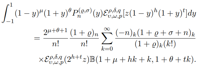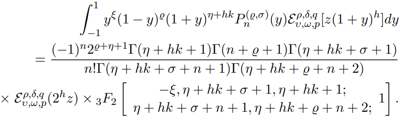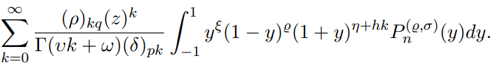 Ключевые слова: функция Миттаг-Леффлера, обобщенная гипергеометрическая функция, функция Бесселя–Мейтленда, многочлены Якоби, многочлены Эрмита.