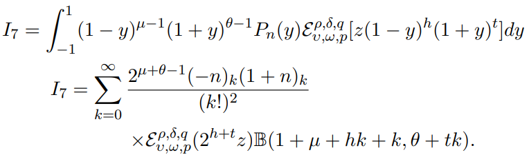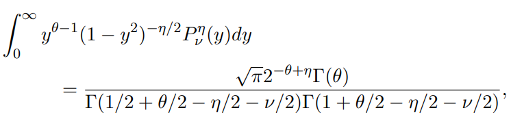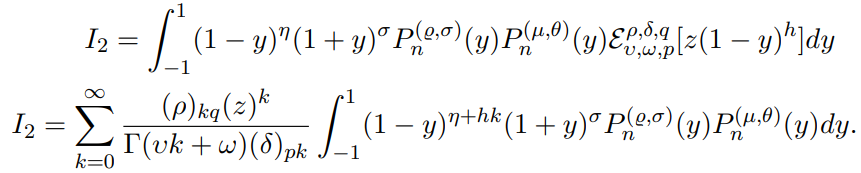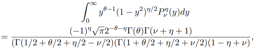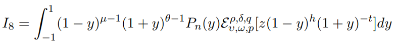 If we replace η by ξ − 1 and put ϱ = σ = µ = θ = 0 then the integral I2 transforms into the following integral involving the Legendre polynomial (Rainville, 1960)