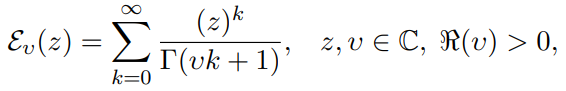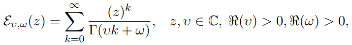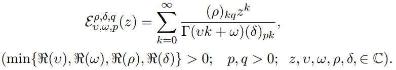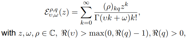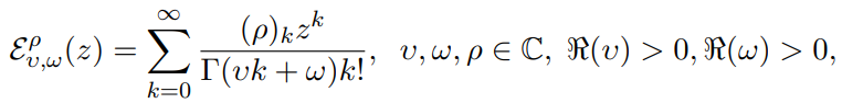 whenever Γ(ρ) is defined, (ρ)0 = 1, ρ = 0. It is an entire function of order . For various properties of this function with applications, see Prabhakar (Prabhakar, 1971). Further generalization of the Mittag-Leffler function