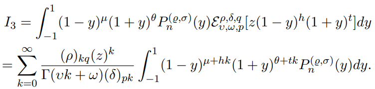 If σ = ϱ = 0, µ is replaced by µ − 1 and θ by θ − 1, then the integral I3 transforms into the following integral involving the Legendre polynomial (Rainville, 1960)